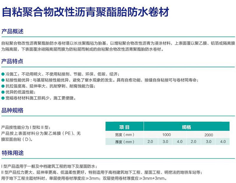 自粘聚合物改性沥青聚酯胎防水卷材