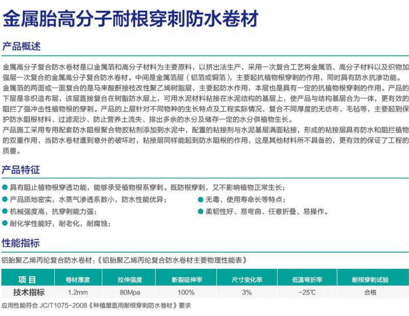 金属胎高分子耐根穿刺防水卷材