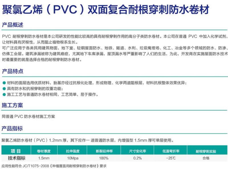 聚氯乙烯(PVC)双面复合耐根穿刺防水卷材