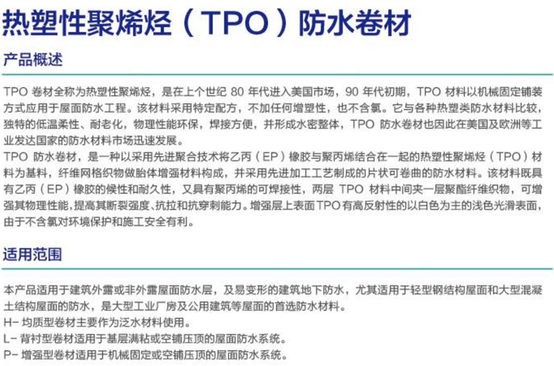 热塑性聚烯烃(TPO)防水卷材