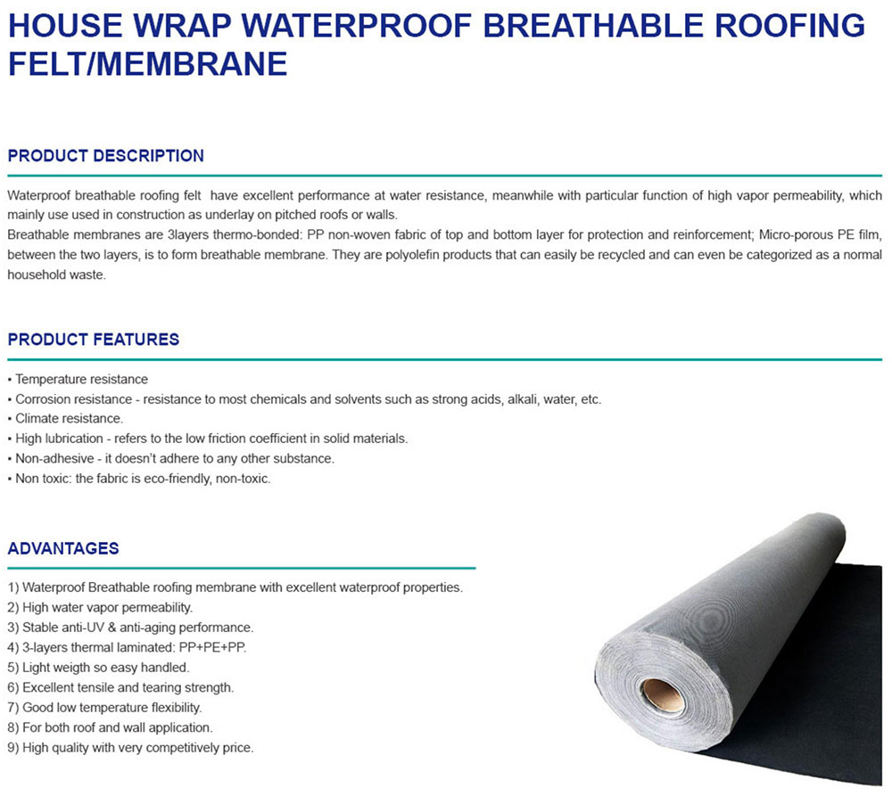 HOUSE WRAP WATERPROOF BREATHABLE ROOFINGFELT/MEMBRANE