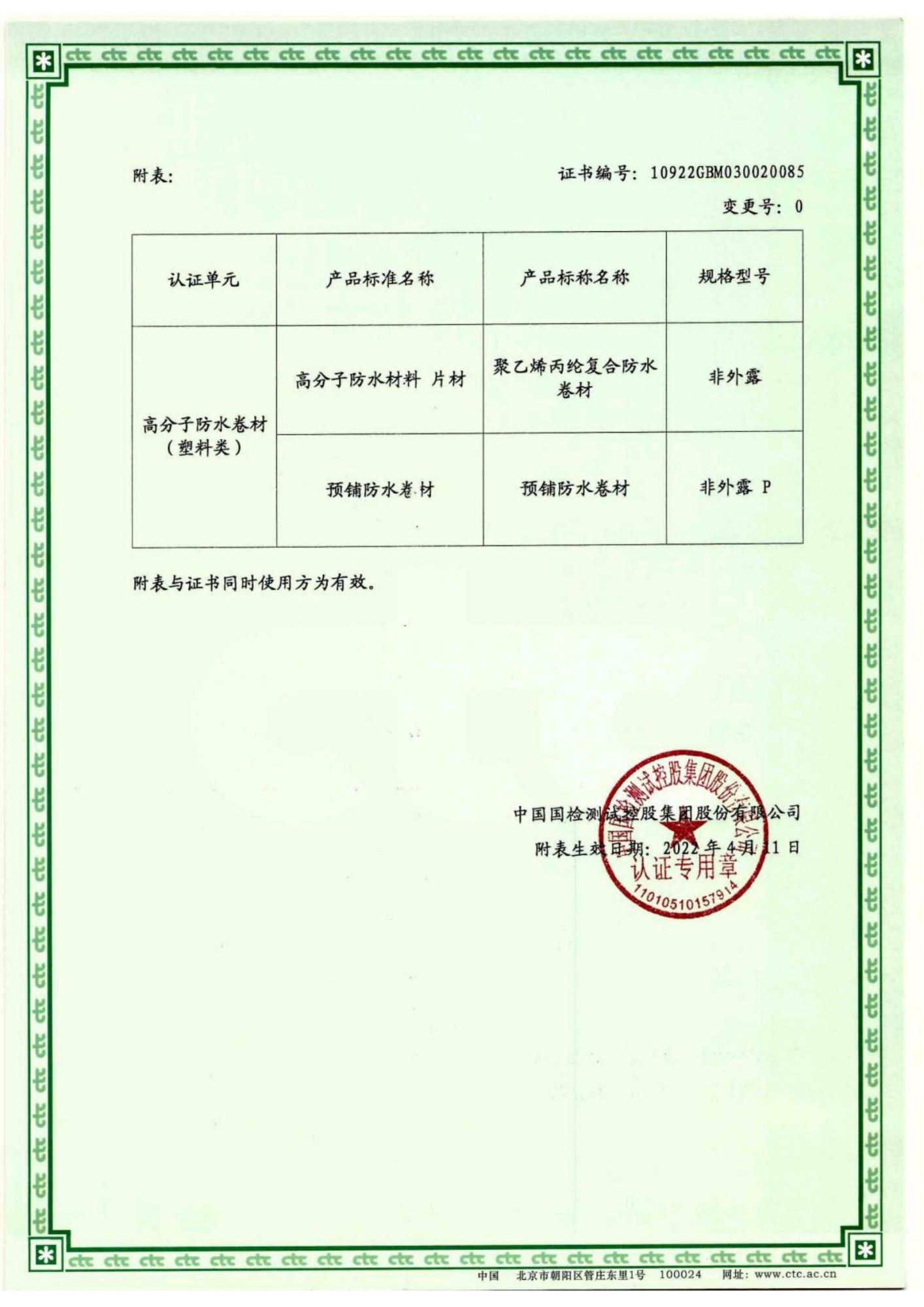 中国绿色建材产品认证证书-高分子卷材