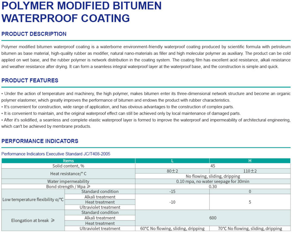 POLYMER MODIFIED BITUMENWATERPROOF COATING