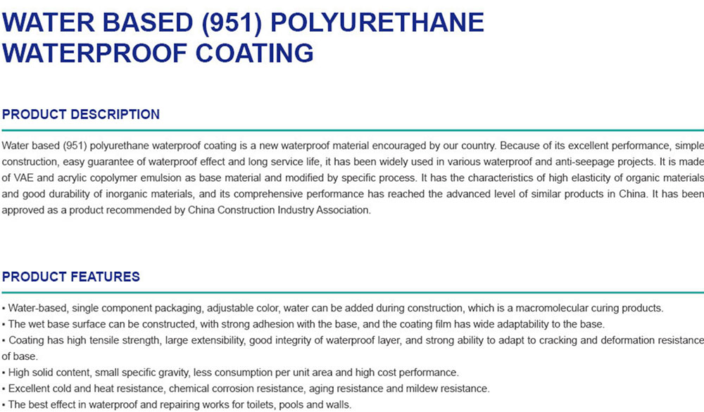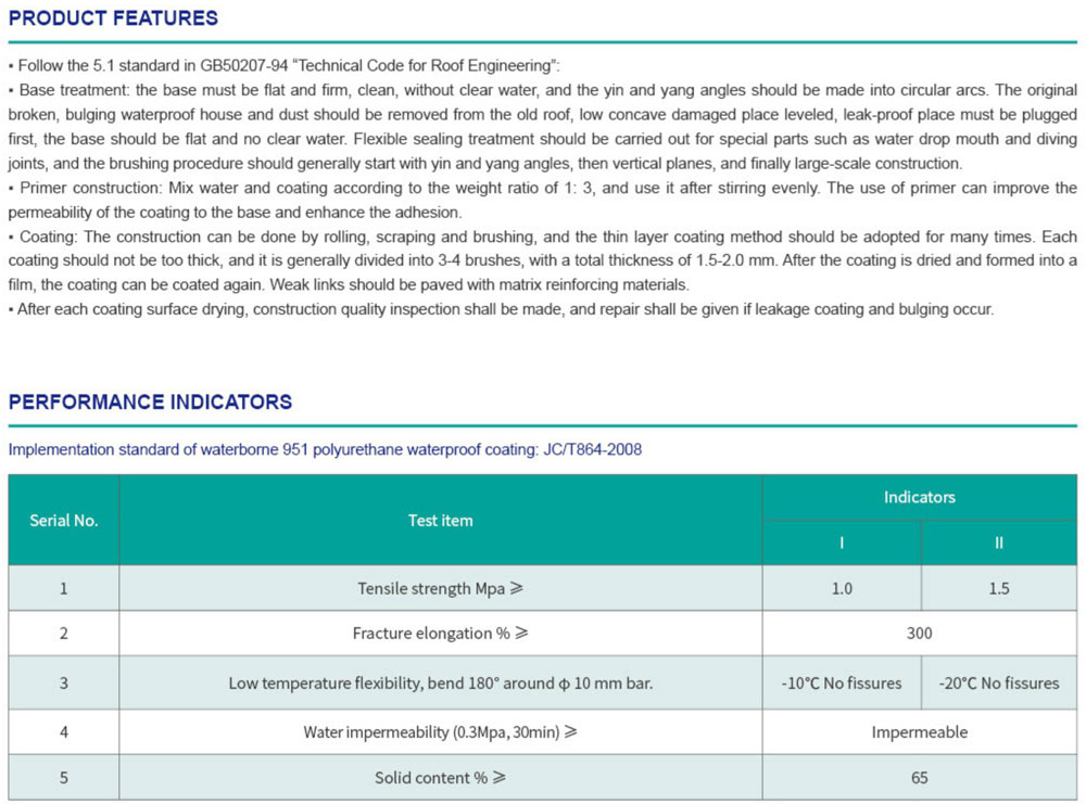 WATER BASED (951)POLYURETHANEWATERPROOF COATING