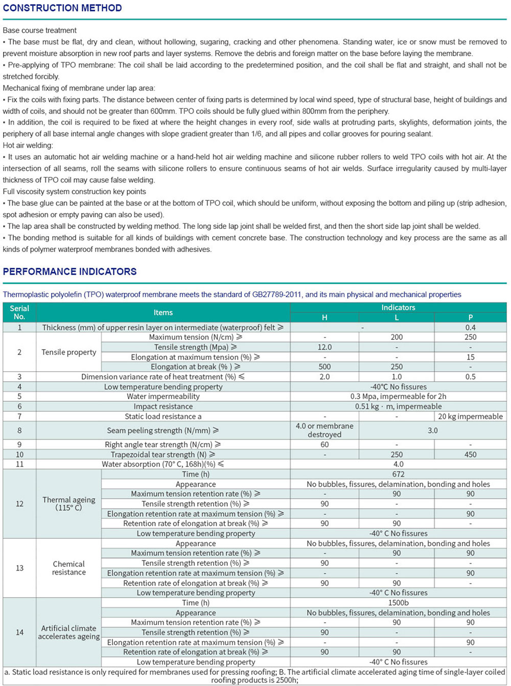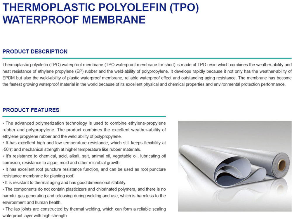 THERMOPLASTIC POLYOLEFIN (TPO)WATERPROOF MEMBRANE